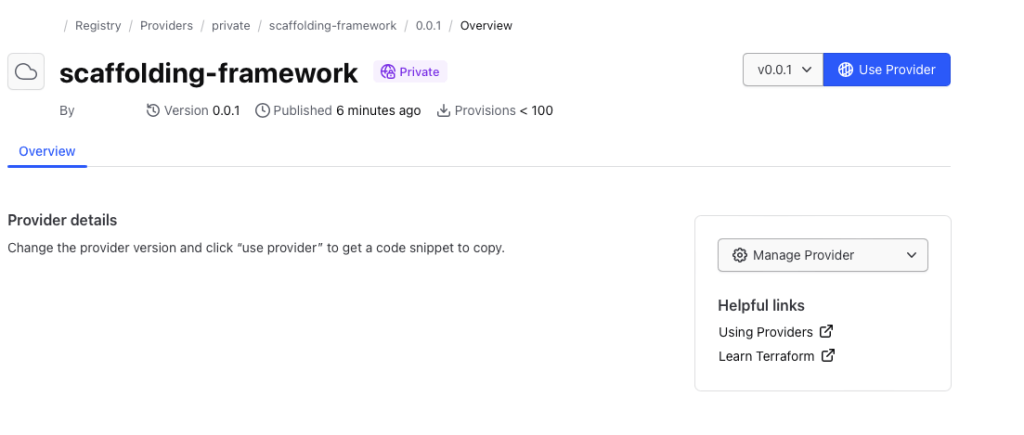 Let’s explore an example using the Terraform Provider Scaffolding Framework to build a custom Terraform provider and publish it to a private registry. Scaffold provides a framework starter kit that you can use out of the box to replace your APIs.